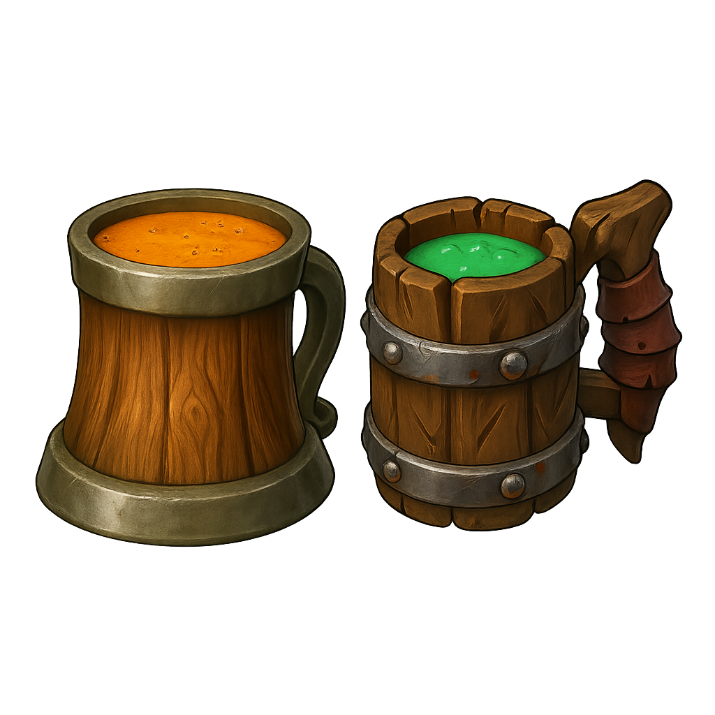 Orcish drinks are never subtle. They are brewed to burn, bite, or bellow. From the molten depths of the flame tuber fields to the marshy wilds where serpents slither, every mug tells a story of power, pride, and pain. Whether you’re warming your gut with Molten Rootbrew or testing your courage with the glowing Feral Grog, these brews are more than refreshments