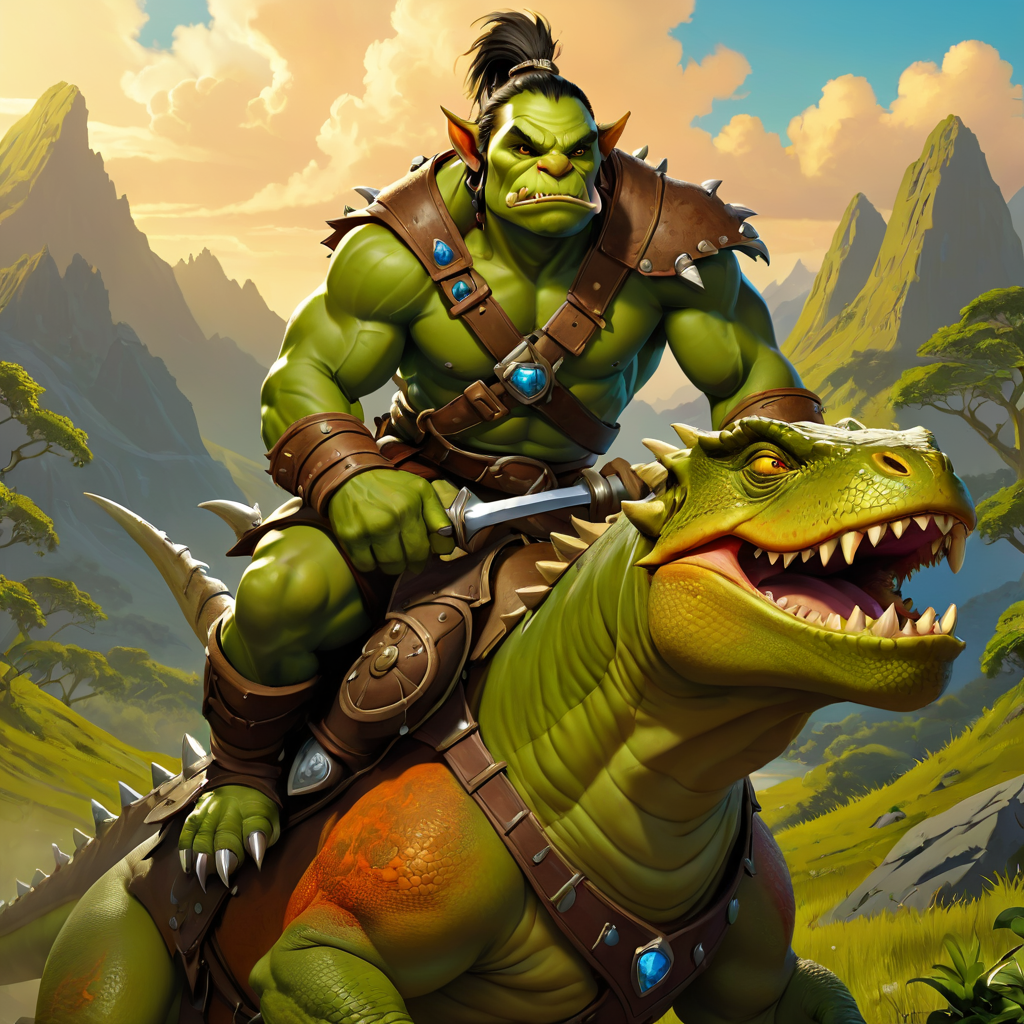 Traditions are central: dream-reading, ancestral carvings, and sacred games are passed through generations. Orc weapons are often handmade in rituals, inscribed with runes and clan marks, symbolizing both craft and spirit. They also form bonds with animals, some clans domesticating lizards or training desert beasts as companions or protectors.