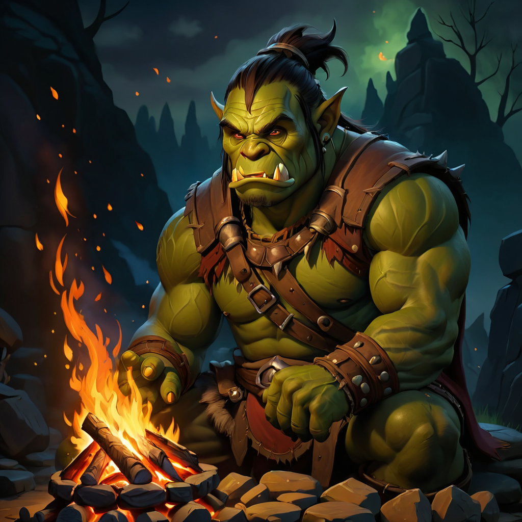 In religion, the orcs venerate Kaba-Kaar, god of death, though each clan sees him differently—some as a flame, others as silence or rebirth.(this has be in development even from the great families from the grat empire) Their language is rich in ancestral terms and bone-symbolic writing( well read priests still know the old language and alphabet from Age of Golden Fire , while music plays a role in everything from mourning rites to war chants. Clothing is crafted from bone, hide, and stone-colored fabrics, with each piece reflecting social standing or spiritual belief( and clan membership).