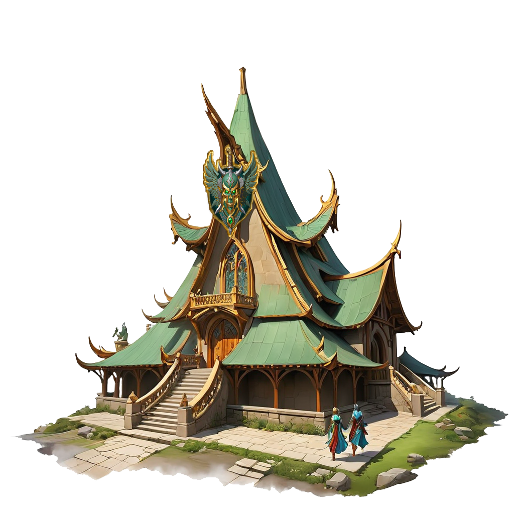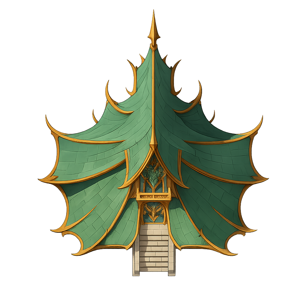 A large structure with flowing lines and layered roofs. Broader and more refined than the great lodge,marking it as a place of status and importance. It is used by respected clan members for gatherings, discussions, and decisions that affect the whole tribe. Whether for votes, strategy, or settling disputes, the space reflects shared power rather than personal rule.
