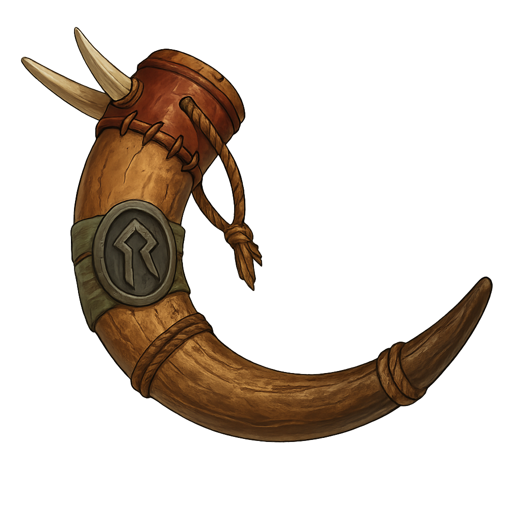 The clan’s gathering horn, blown during rituals and large meetings. A symbol of tradition and unity.