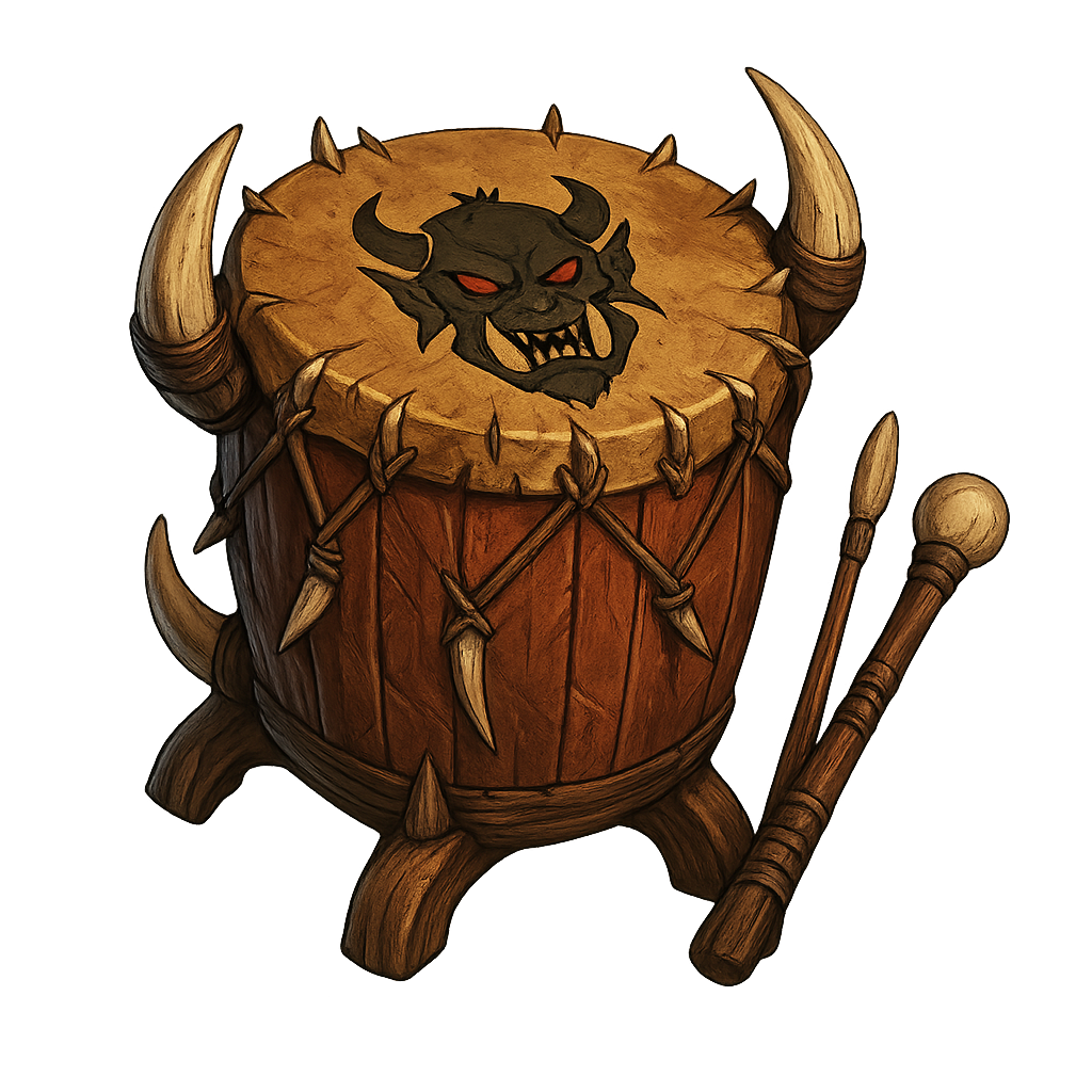 Music holds a central place in orcish culture, woven into the fabric of daily life, ceremony, and warfare. From the thundering rhythm of war drums to the haunting melodies of funeral rites, sound is used not only to communicate emotion but to invoke memory and power. Orc instruments are built for durability and impact – crafted from bone, hide, wood, and metal – each carrying a unique sound shaped by clan tradition.