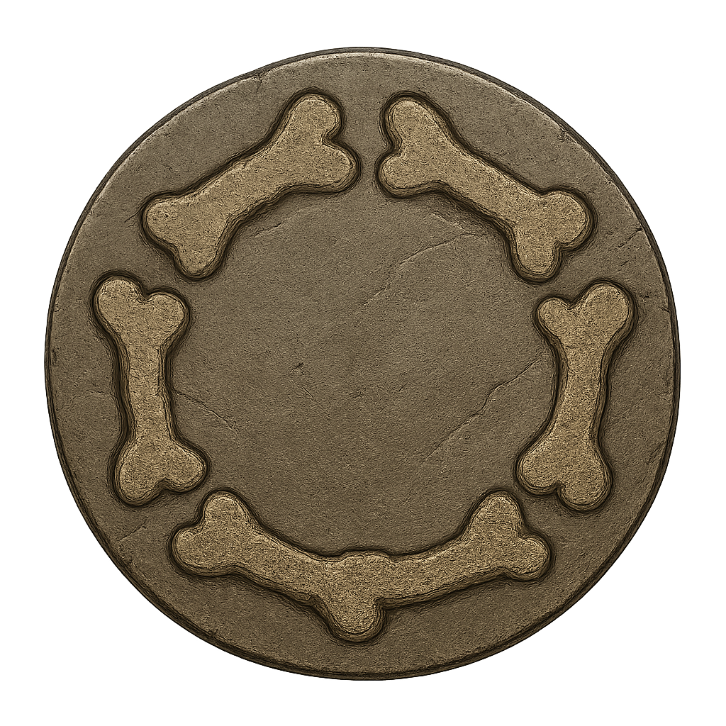 This clan is known for their role as tomb tenders, ritual smiths, and ceremonial guardians. They follow the ancient faith of Kaba-Kaar in its purest form, viewing death as sacred order. Their tents are shaped like funerary shrines, draped in black and bone, with bone emblems sewn into the flaps. Structures are adorned with silent motifs—skull totems, tied bones, and painted symbols. Governance lies with a priest-led theocracy, guided by “The Ring of Death,” a circle of preserved elders consulted through ritual.