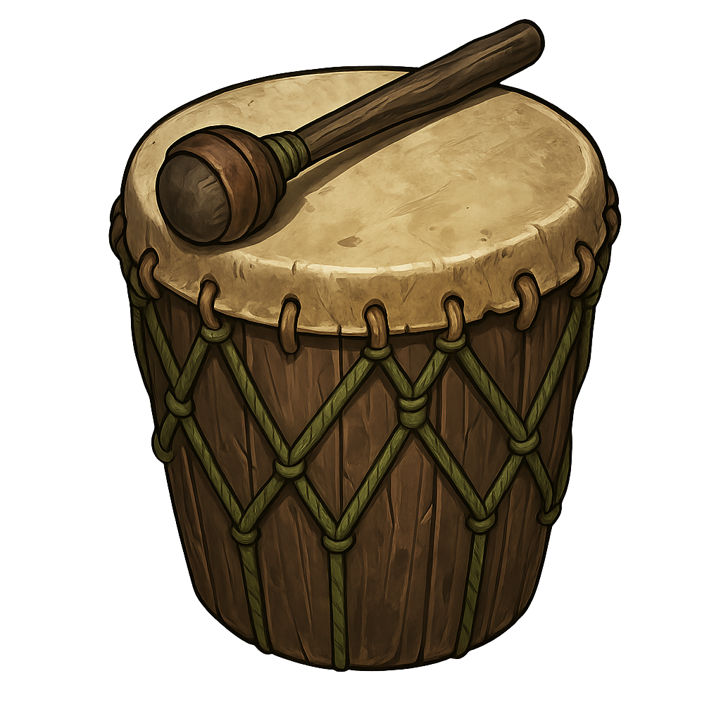 Everyday drum used to keep work rhythm and during celebrations. Represents the clan’s heartbeat. Grants focus or calm to groups.