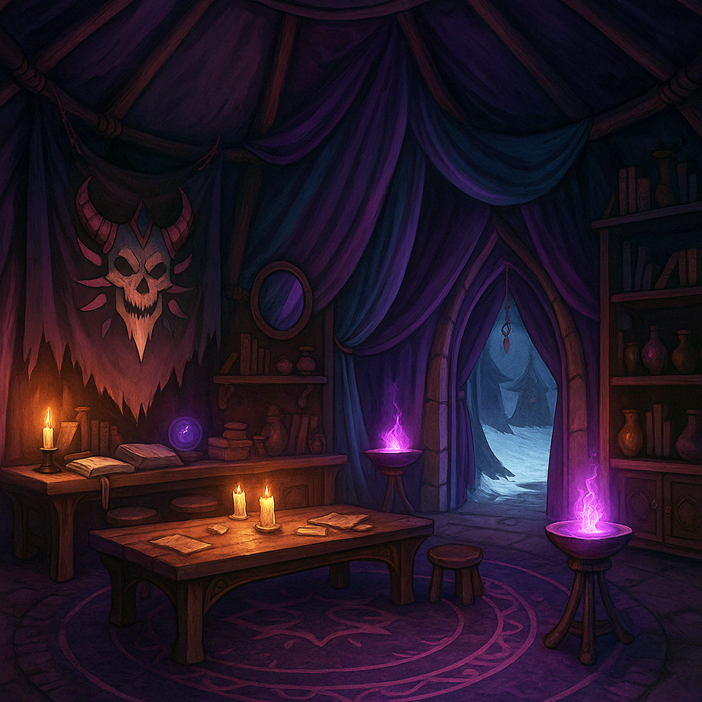 Dwellers of caves and dusk. Death is the stillness between heartbeats. Their tents are low and shadowed, often within or near natural caverns. Bone wings and silence charms hang at every entry. Decisions are made under moonlight in ritual circles where silence holds more meaning than words.